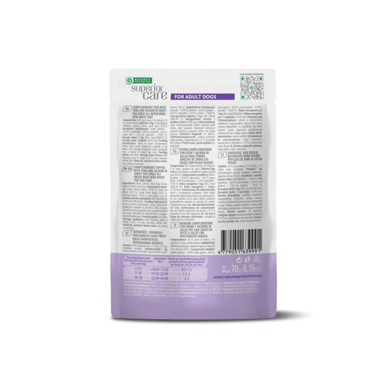 Nature's Protection Superior Care дієтична добавка для дорослих собак усіх порід із тунцем і лососем у соусі, спеціально розроблена для дорослих собак із чутливою травною системою.