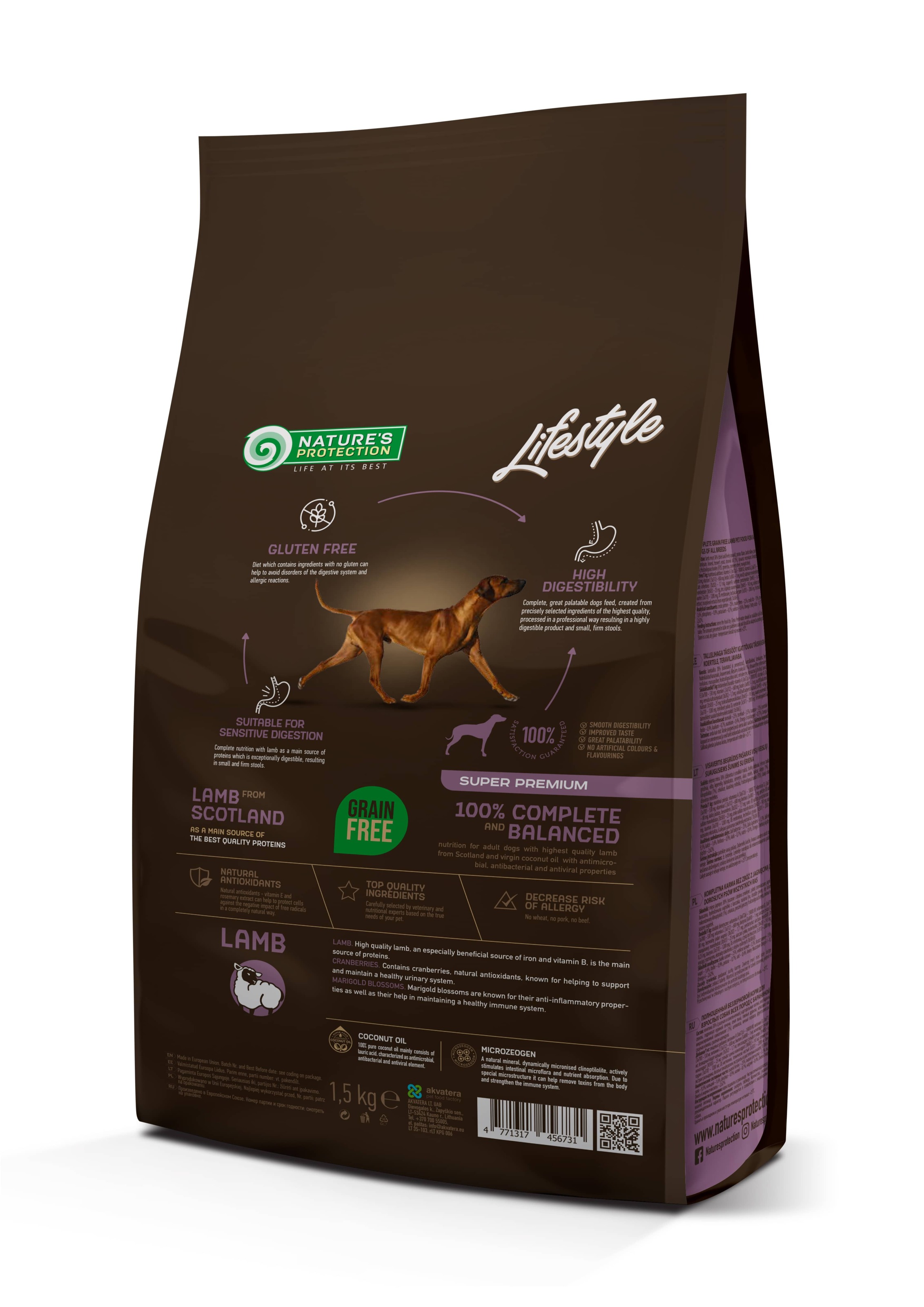 Nature’s Protection Lifestyle Grain Free with Lamb for Adult All Breeds — повнораціонний і збалансований сухий корм супер преміум класу з джерелом білка та сировини найвищої якості. Повнораціонний сухий корм спеціально розроблений для дорослих собак усіх порід, щоб забезпечити легку засвоюваність і здорову імунну систему. Збагачений інноваційними інгредієнтами, які не містять глютену та ефективні для благополуччя вихованця. Спеціальна формула цього сухого корму для собак не тільки забезпечить вашого вихованця всіма ефективними поживними речовинами, але також допоможе зміцнити імунну систему та підтримувати здоровий стан шкіри та шерсті.