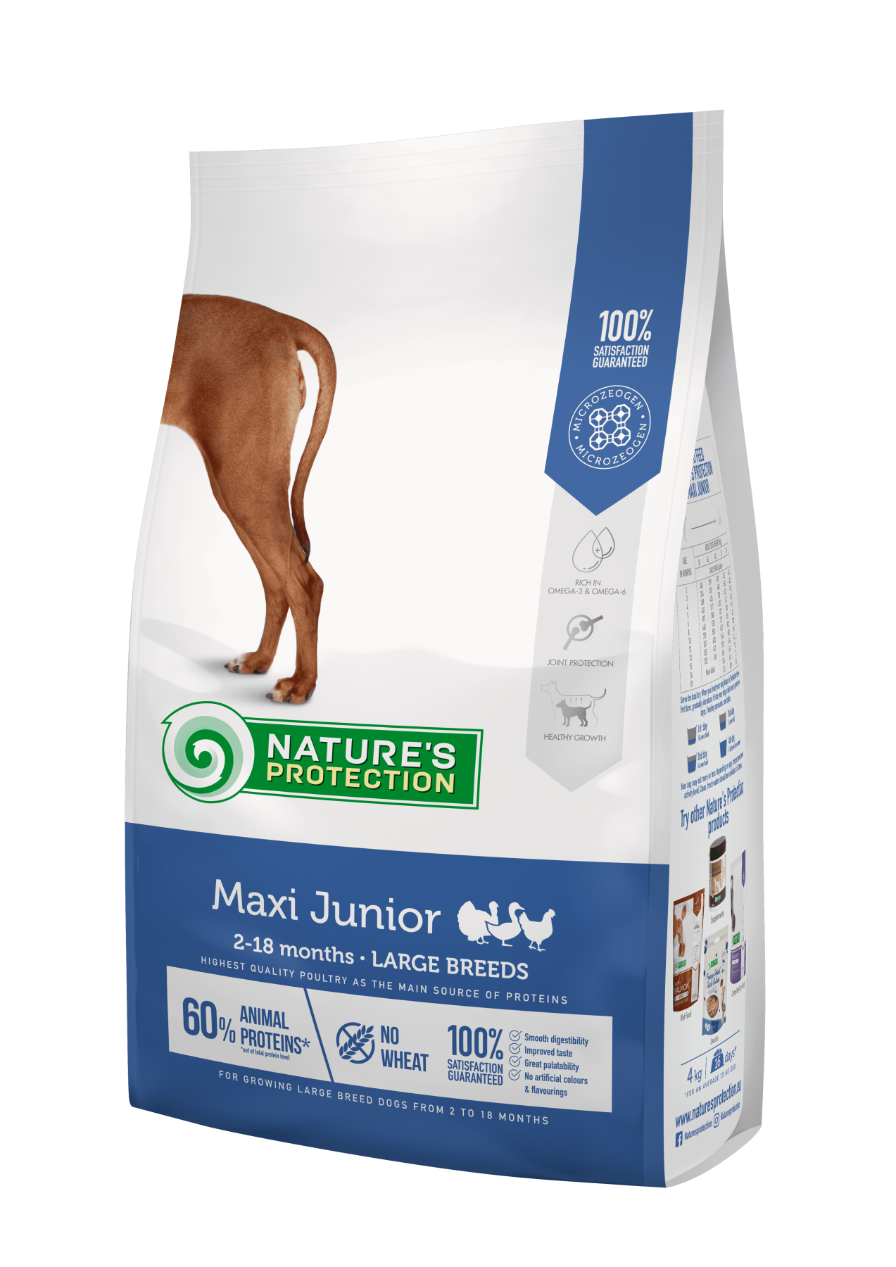Nature's Protection for Junior Large Breed Dogs with Poultry – це повнораціонний збалансований сухий корм супер преміум класу з високоякісним джерелом білка та сировиною. Склад цього сухого корму збагачений інгредієнтами, які ідеально підходять для забезпечення необхідної кількості калорій, вітамінів і мінералів для росту юніорів великих порід. Повноцінний склад сухого корму не тільки забезпечить вашого улюбленця всіма необхідними поживними речовинами, але й підтримає належний розвиток та рівень енергії. Кормом можна годувати собак у віці від 2 до 12 місяців.