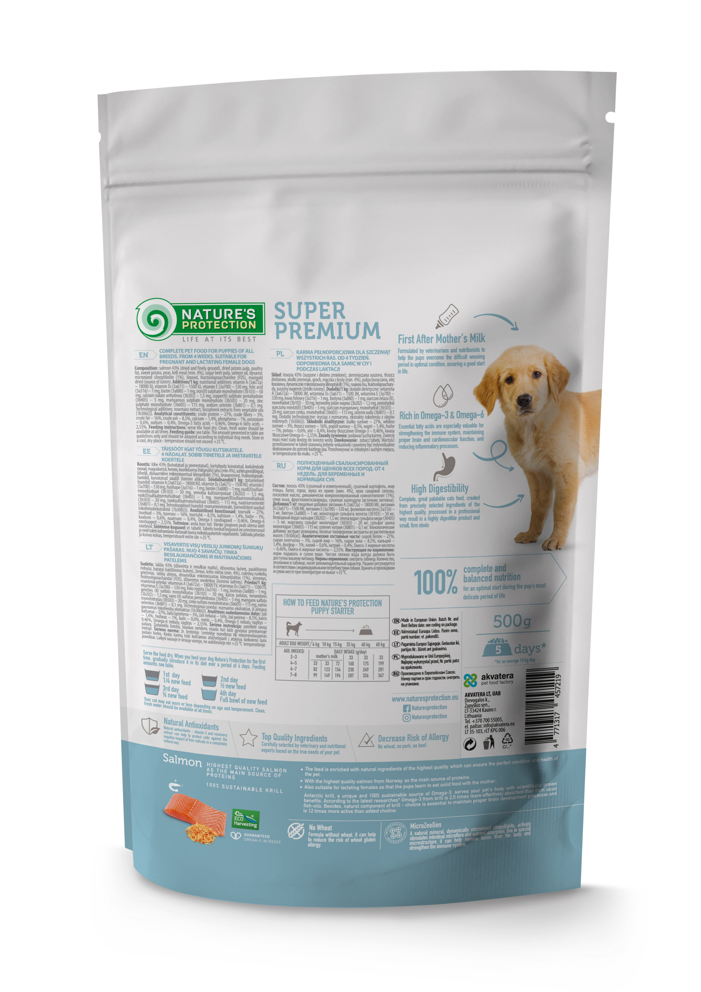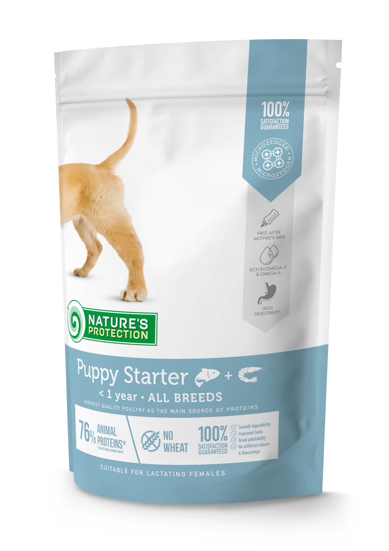 Nature's Protection Starter Salmon with Crill for All Breed Puppies – це повнораціонний і збалансований сухий корм для собак супер-преміум класу з джерелом білка найвищої якості та сировиною. Склад цього сухого корму для собак збагачений інгредієнтами, які ідеально підходять для забезпечення необхідної кількості калорій, вітамінів і мінералів для розвитку та енергії цуценят.