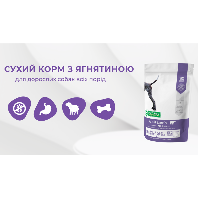Корм Nature's Protection для дорослих собак усіх порід з ягнятиною відомий своїм збалансованим складом та сировиною, що сприяє безперебійній роботі травної системи.