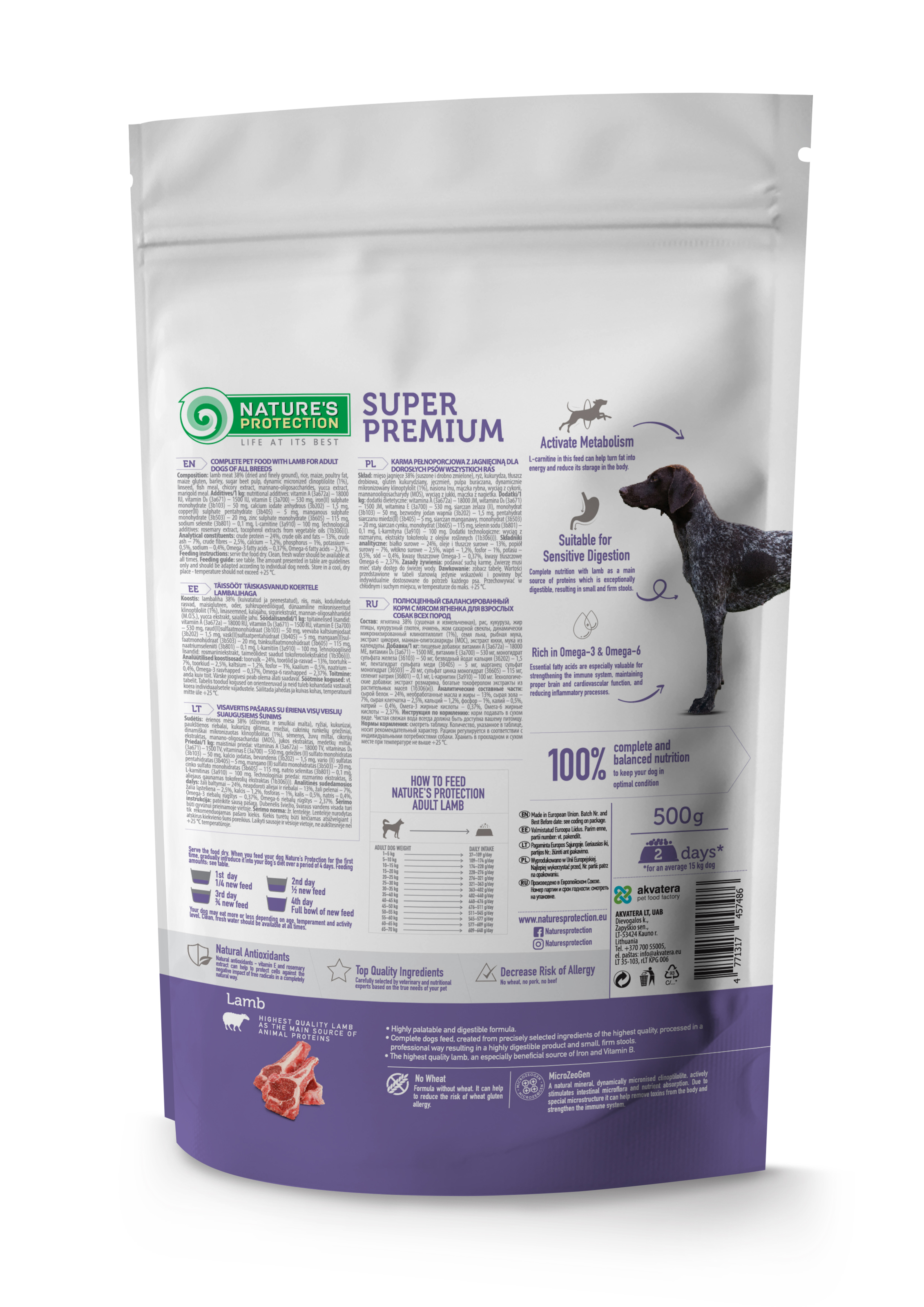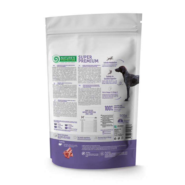 Nature's Protection for Adult All Breed Dogs with Lamb – це повнораціонний збалансований сухий корм супер преміум класу з високоякісними джерелами білка та сировиною. Склад цього сухого корму збагачений інгредієнтами, які ідеально підходять для забезпечення необхідної кількості калорій, вітамінів і мінералів. Повноцінний склад сухого корму не тільки забезпечить вашого улюбленця всіма необхідними поживними речовинами, але й гарантує ідеальну засвоюваність, смакові якості та блискучу шерсть.