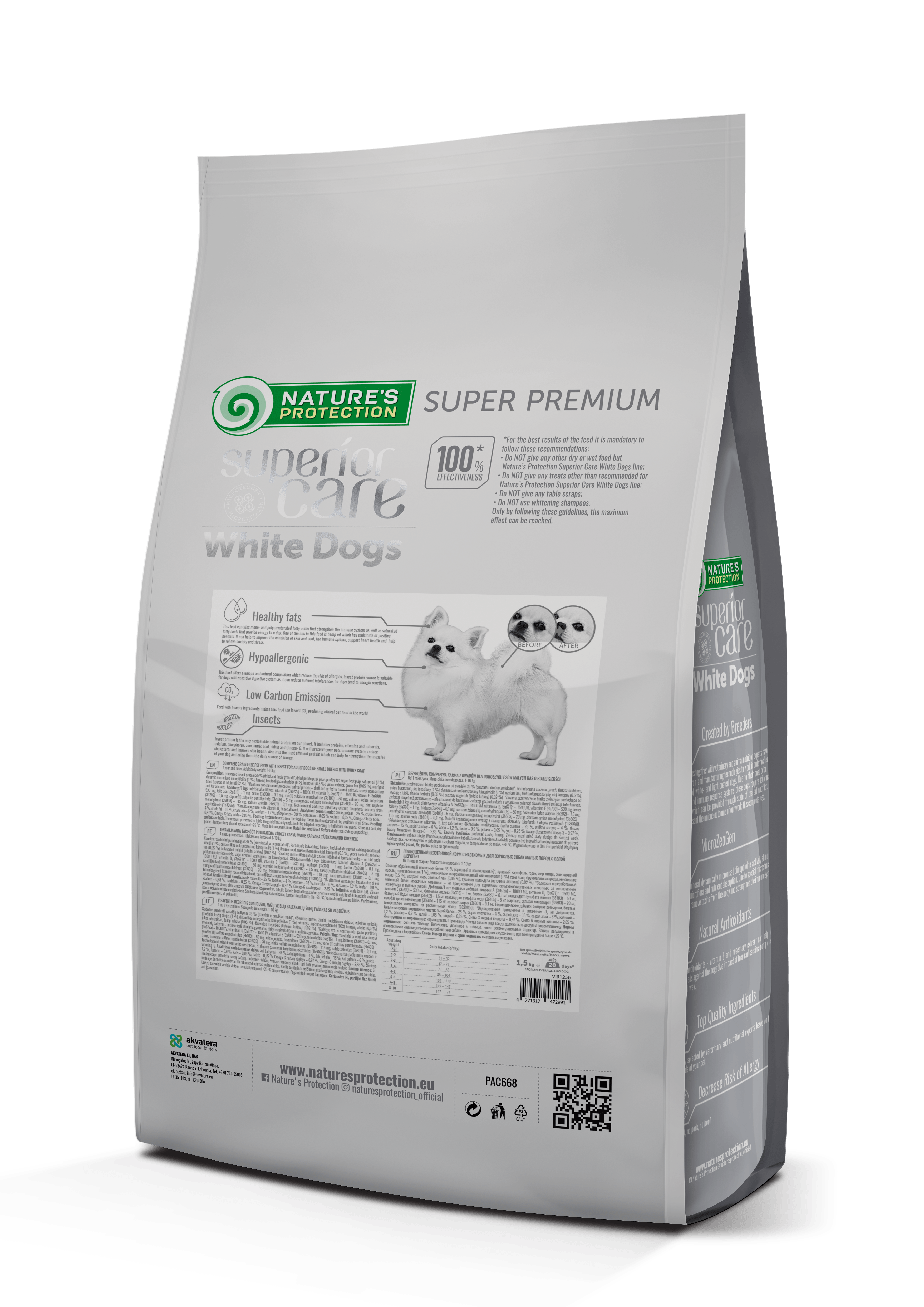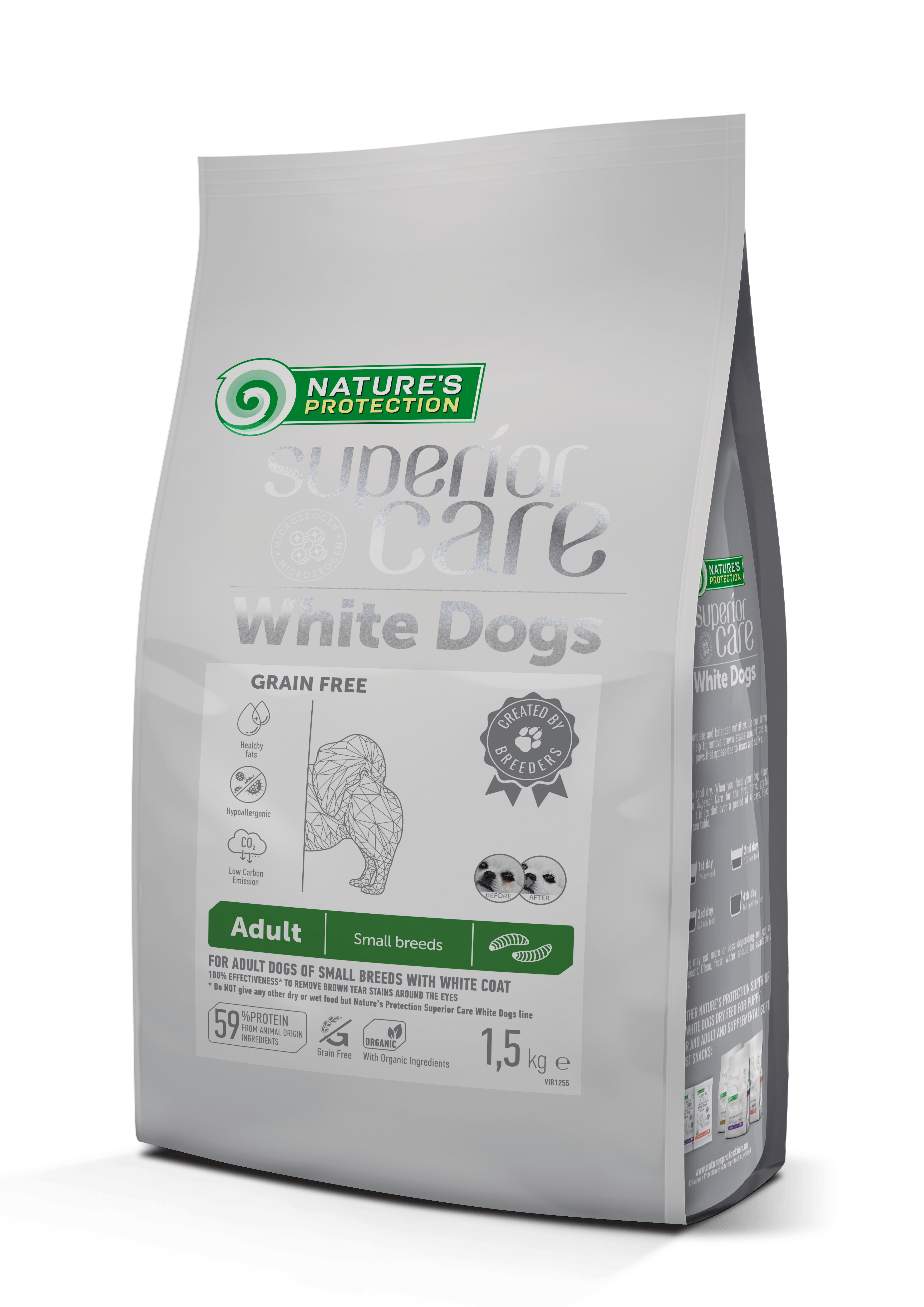 Джерело протеїну найвищої якості та сировина не тільки забезпечать вашого вихованця всіма ефективними поживними речовинами, але також забезпечать ідеальну засвоюваність і смакові якості для собак з білою та світлою шерстю.