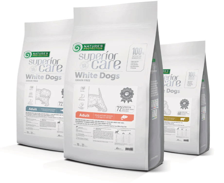 NATURE'S PROTECTION Superior Care – лінія сухих кормів для собак Super Premium, відома інноваційними інгредієнтами та новітніми технологіями здорового харчування домашніх тварин. Цей повнораціонний корм для собак містить лише найякісніші інгредієнти та джерела білка.